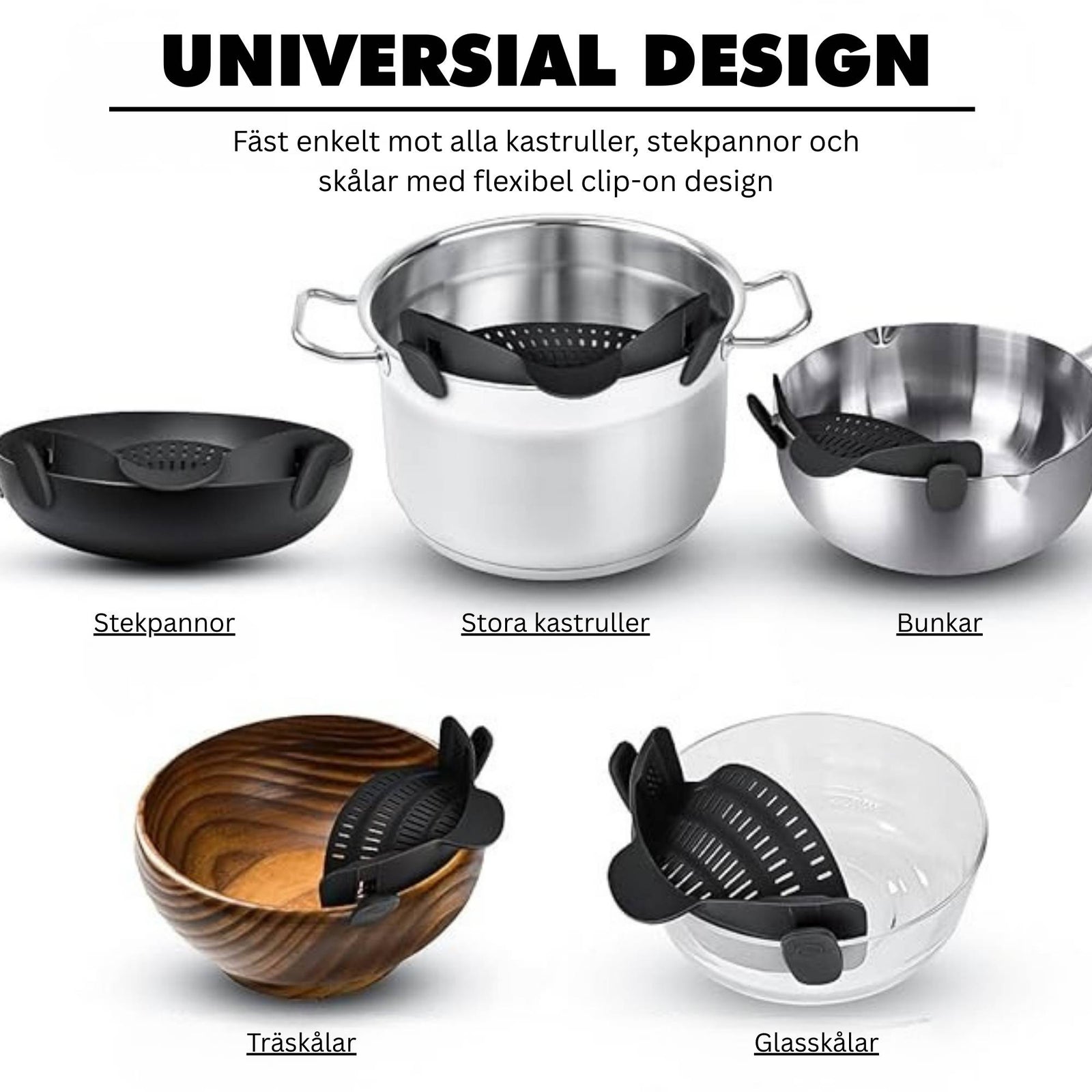 Ja. Den flexibla clip-on designen gör att durkslaget passar de flesta kastruller, stekpannor och skålar.